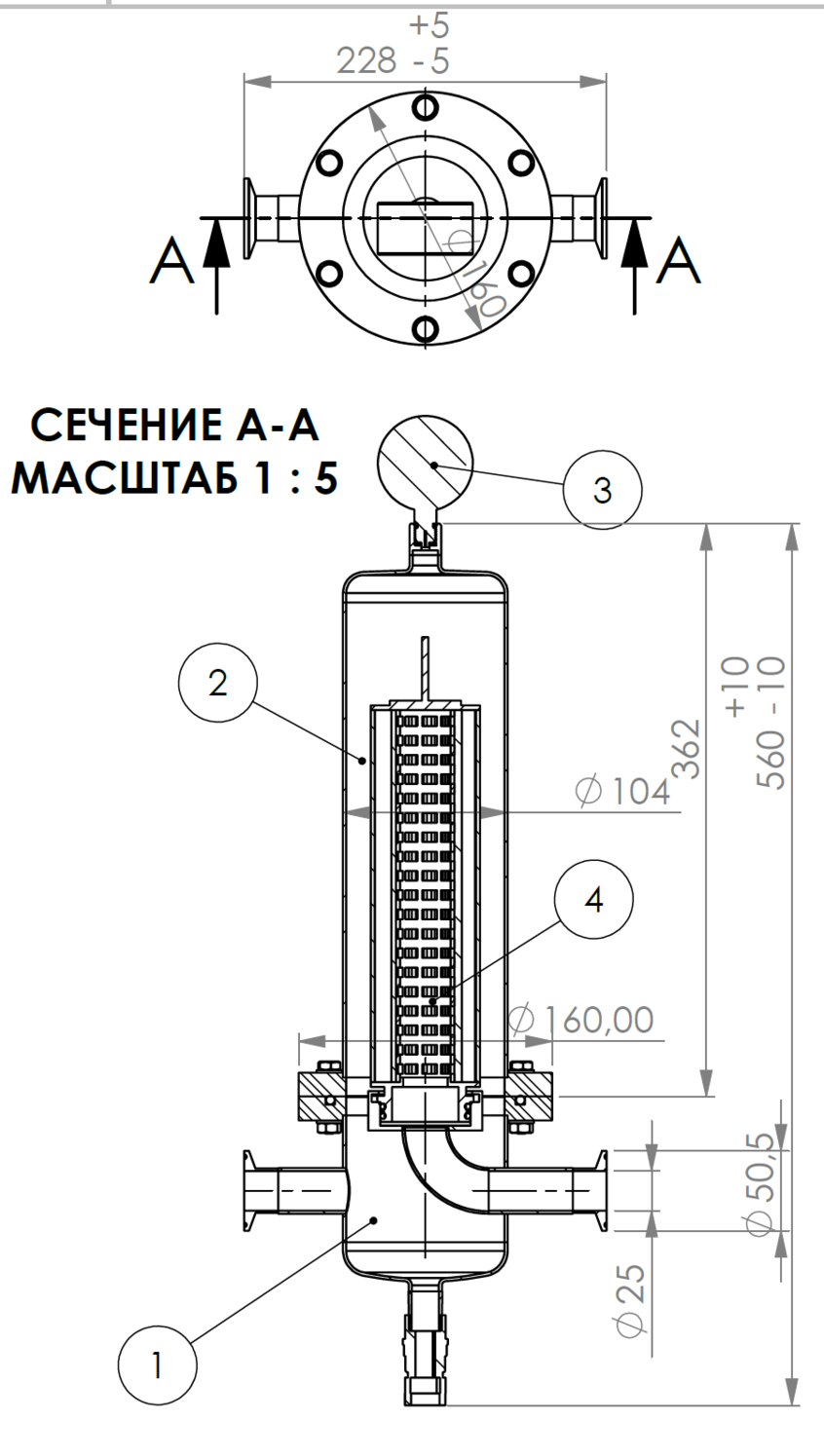 | FH G1S 250/Q/T1 | AISI316 или AISI304 | 280x520 | Tri Clamp 1/25 | Q(226), Ф57мм | 10/250 |